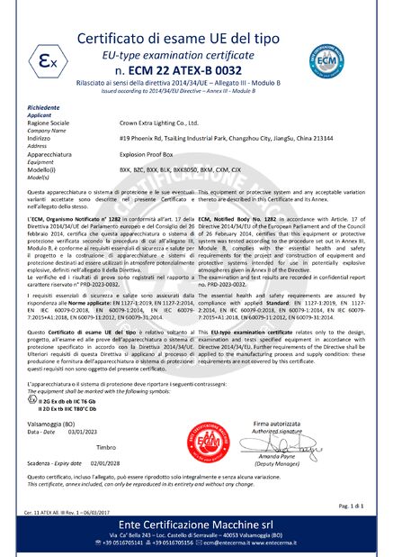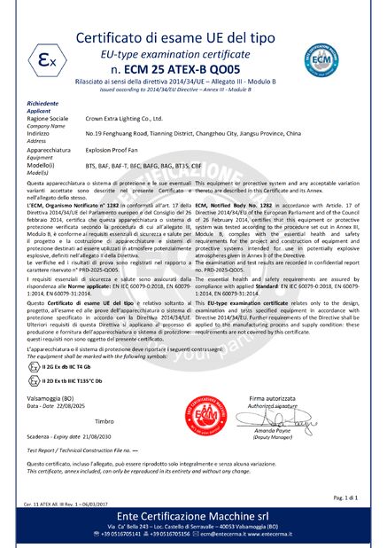 মান:ATEX সংখ্যা:ECM 24 ATEX-D QS01 প্রদানের তারিখ:2024-08-06 মেয়াদ শেষ হওয়ার তারিখ:2027-08-05 |